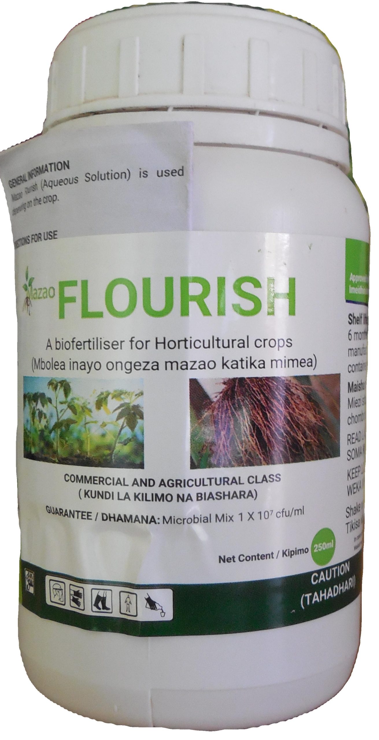 Flourish Bio-Fertilizer is a biological mixture of beneficial microbes used as a bio-fertilizer to promote growth and yield of crops. These living organisms colonize the root zone increasing the supply and availability of nutrients to the plant.